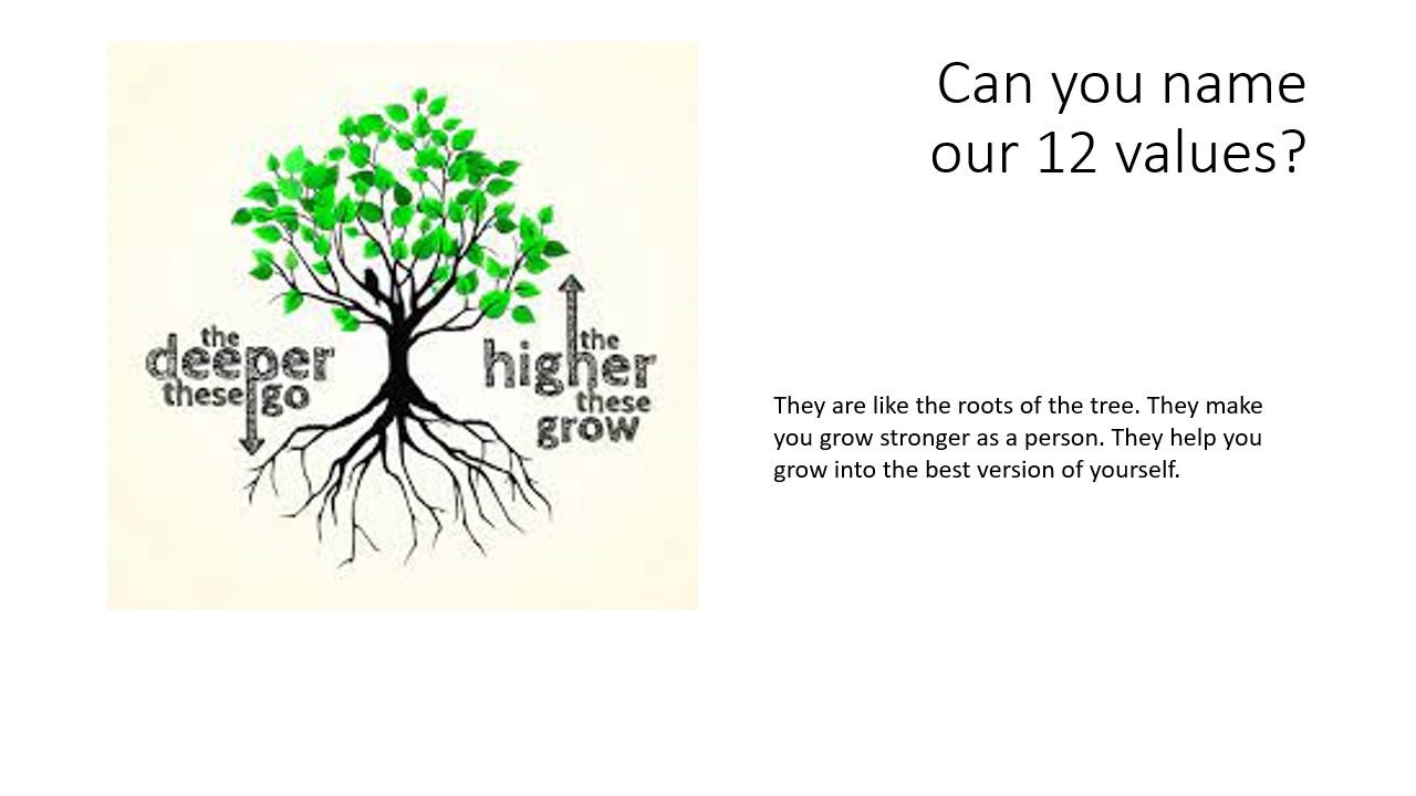 Watch this video and reflect on how you are growing as a person. Not growing in height... but growing on the inside! We want you to flourish into the best version of yourself. What values do you find harder to live with? How can we help you grow?