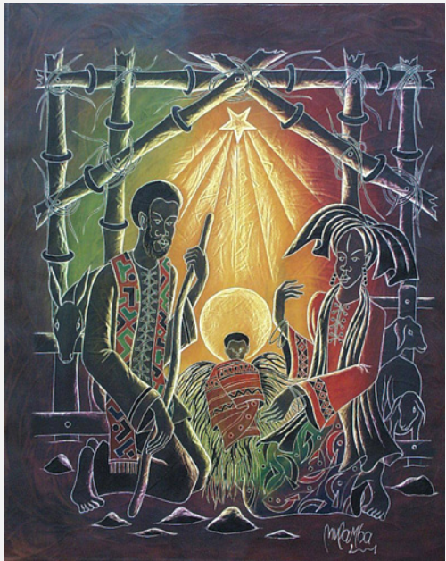 There were no cameras around at the time of Jesus’ birth and so no one really knows what anyone looked like. Lots of artists through the years have depicted what they imagine in their mind. Often artists see the image through their own eyes and so reflect their own culture. Traditionally, images are often ‘Eurocentric’ and artists now are trying to challenge that perception. Here is Joseph Mulmba-Mandangi. He is from the Dominican Republic of the Congo. Can you see how he has imagined the nativity scene to reflect his own culture?
