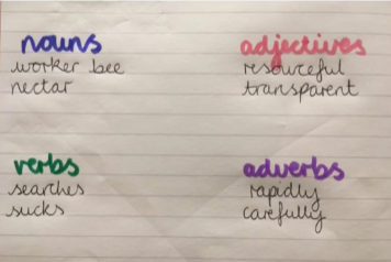 In this lesson, we are going to create a word bank by generating different nouns, adjectives, verbs and adverbs to use in our writing.