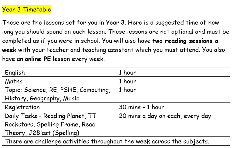 This is the work you will do at home. You need to log on to Teams for your registration every day