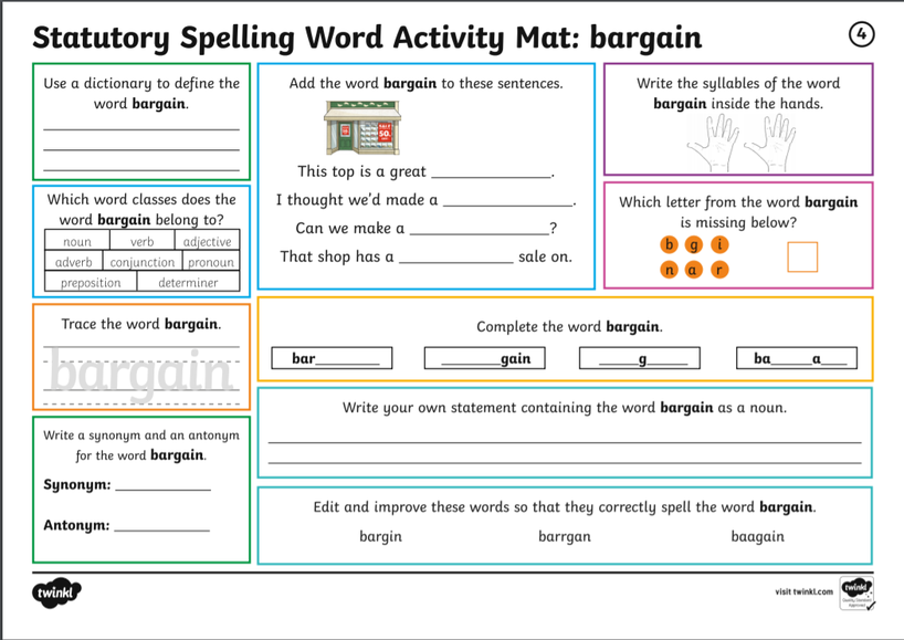 Complete the spelling mat below. If you can't print it off, write your answers on paper.