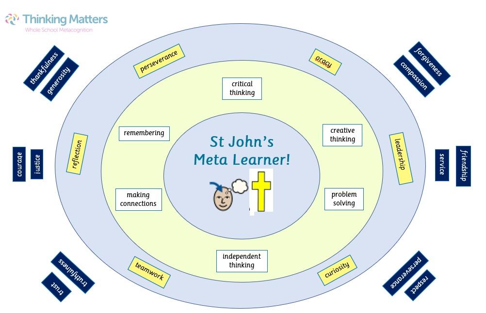 Staff and our Metacognition Drive Team have been working with Thinking Matters and have designed our target. This outlines what intelligent learning behaviours and cognitive (types of thinking) skills we would like to develop. This is set in the wider context of our school values.