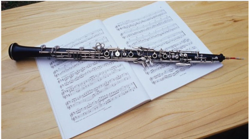 The solo is played on the oboe. The oboe is a double reeded woodwind instrument. Oboes are usually made of wood, but may also be made of synthetic materials, such as plastic or resin. A musician who plays the oboe is called an oboist. An oboe has a very bright sound and is often used to play solo parts in orchestral pieces.