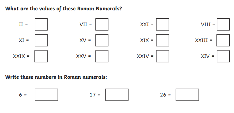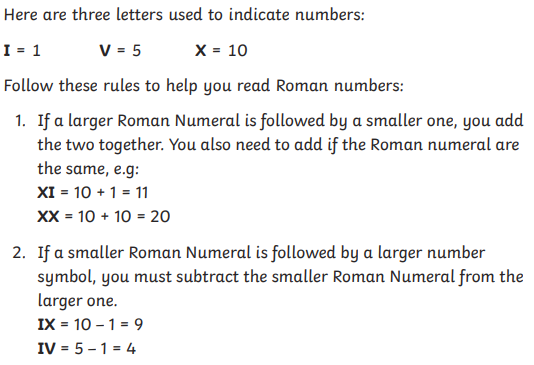 Challenge: See if you can answer these questions. Copy the Roman Numerals into your book and then write them as numbers next to them.