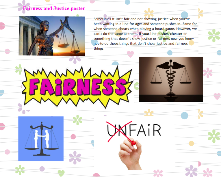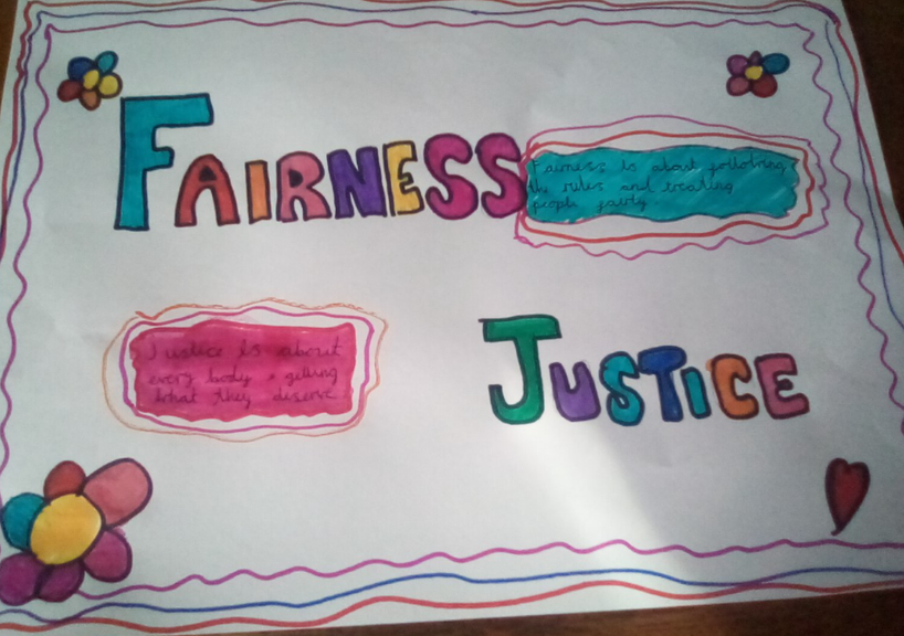 Fairness and Justice are our values this term, but what do those words actually mean? Today, we would like you to look up those words and think about how we can demonstrate those qualities as individuals. You and your family may give regularly to charities as a way of sharing your wealth and try to make things a bit fairer. You may also have stood up for a friend at school when you felt they were being treated unkindly by others or fought for justice for something you strongly believed in. Watch this video and have a think about its message, then create us a poster to show us what you have understood: