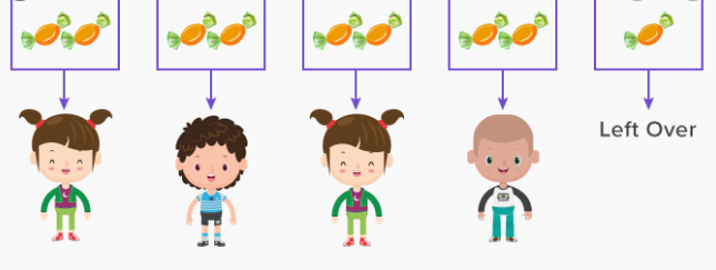 Today we will be dividing with remainders. Remainders are the bits left over when a number doesn't divide neatly (it isn't in the times table). For example if I wanted to share my 9 sweets equally between 4 people, each person could have 2 sweets but there would be one left over. This is the remainder. so 9 divided by 4 = 2 r 1