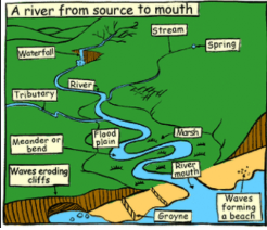 When we think about rivers it is easy to just think about a big channel of water but did you know there are actually many different features that actually form one? Today you are going to be thinking about a river right from it’s source (beginning) all the way down to the sea. Click the link and spend some time exploring this page, there is information, a video and quiz. You will need this for your work afterwards. https://www.bbc.co.uk/bitesize/topics/z849q6f/articles/z7w8pg8